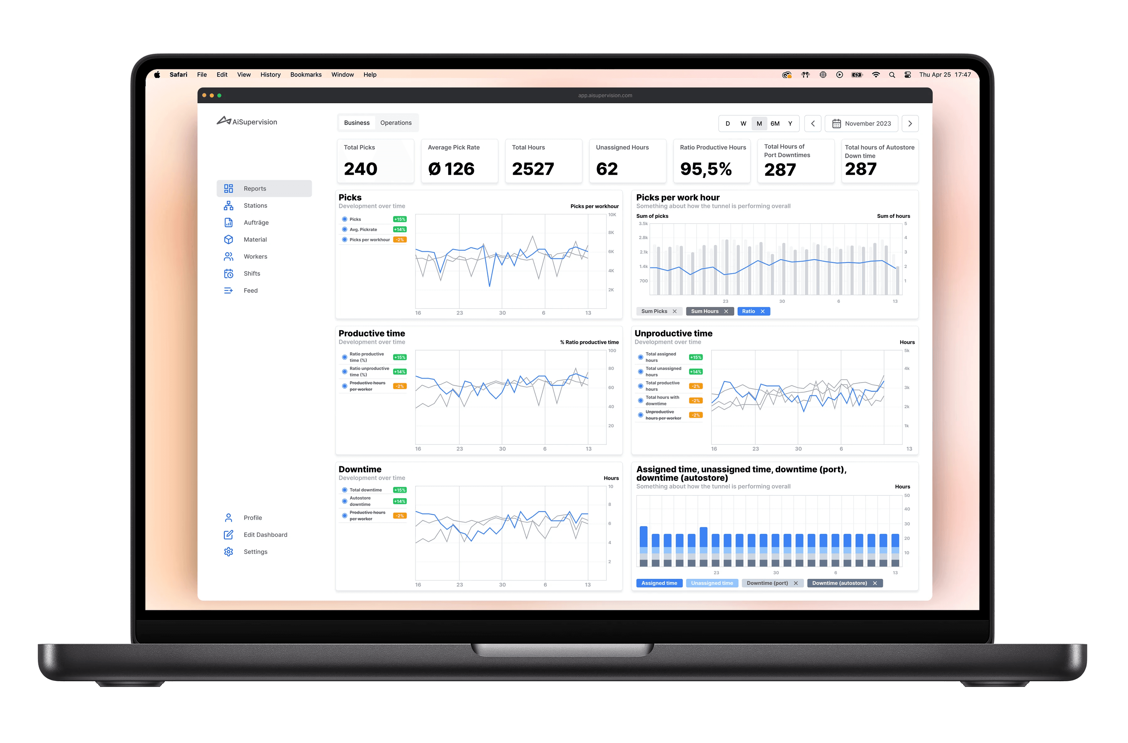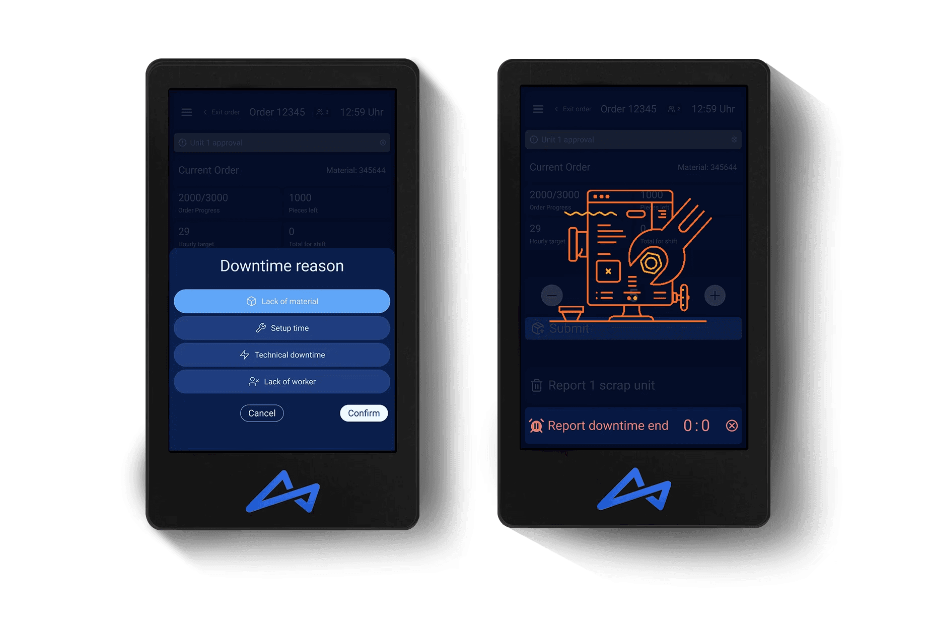 In order to gather real time data for our dashboards we delivered tablets with android apps to be deployed per workstation.