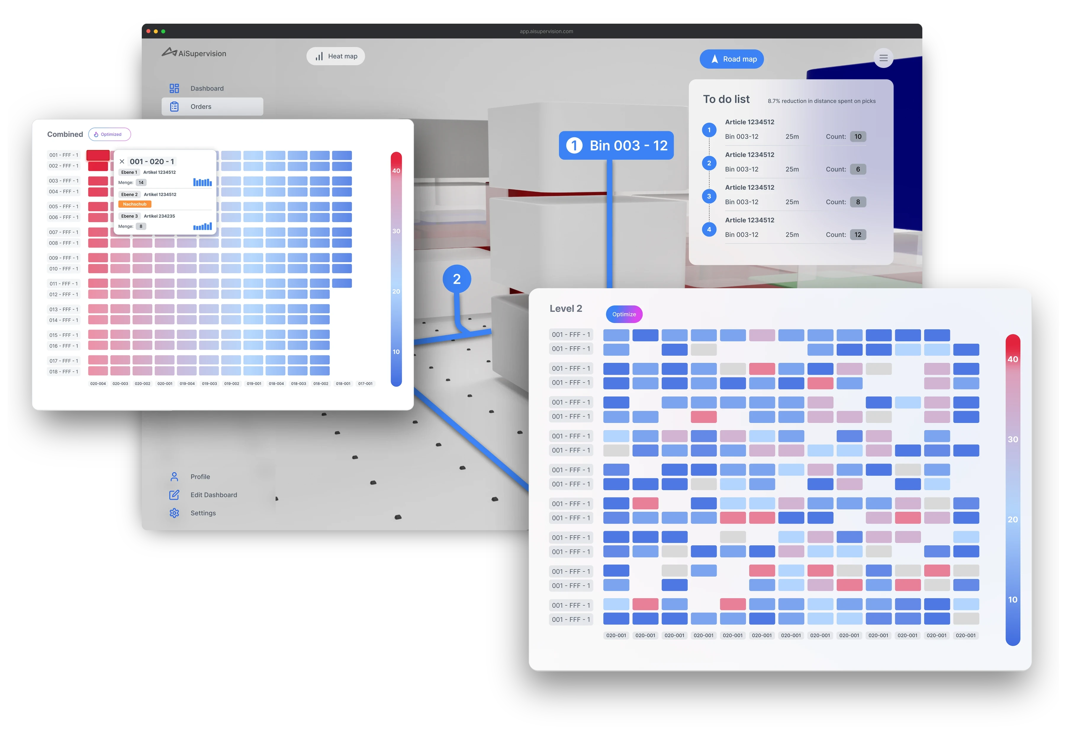 Using heatmaps to visualize bins with high activity and suggesting ways of reorganizing bins based on order predictions.